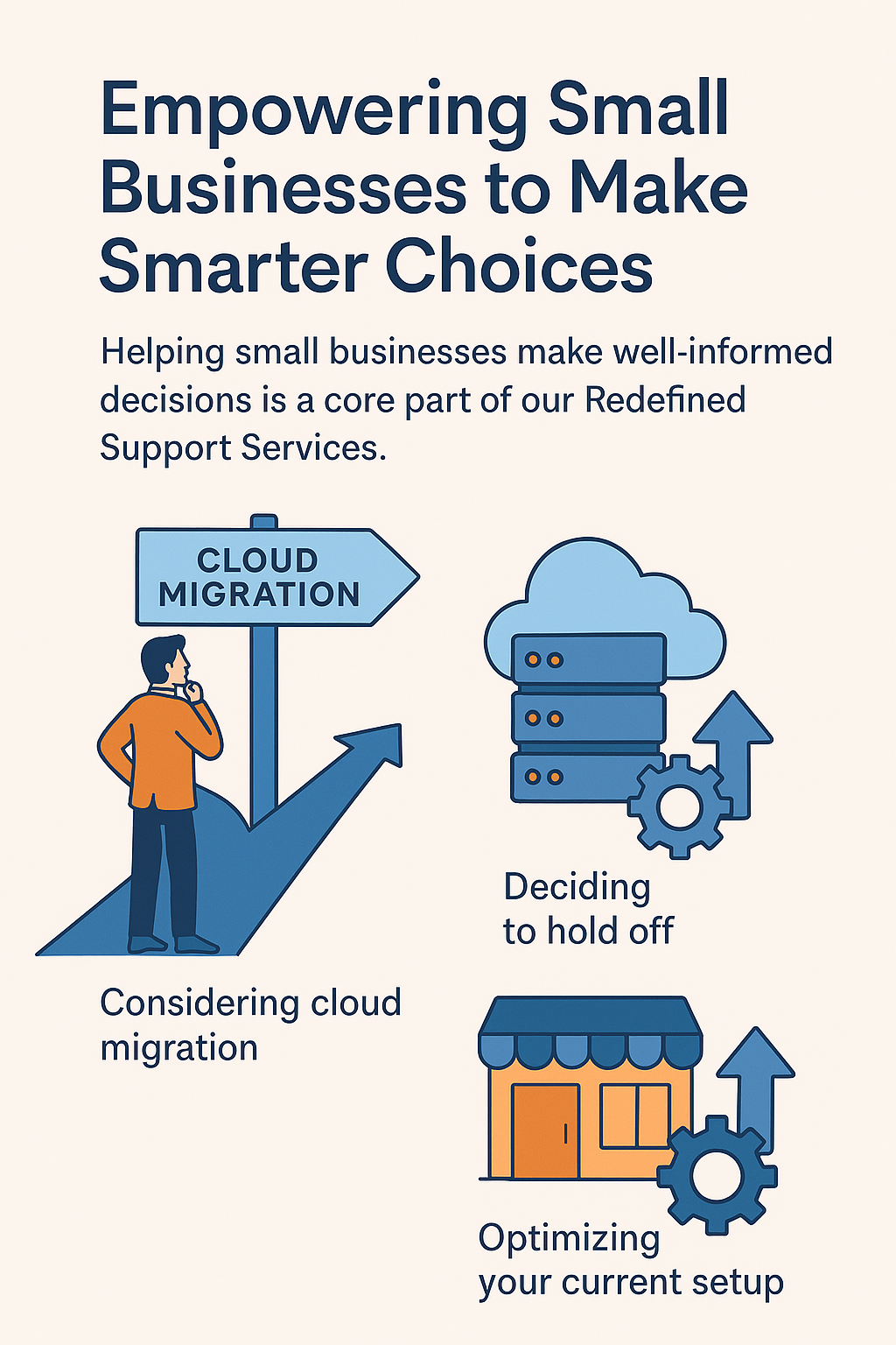 While there are numerous reasons why almost any business can benefit from cloud computing, the specific advantages for your business depend on various factors, including your industry, number of employees, and the software applications you use. To assist you, we offer the following 3 comprehensive services: